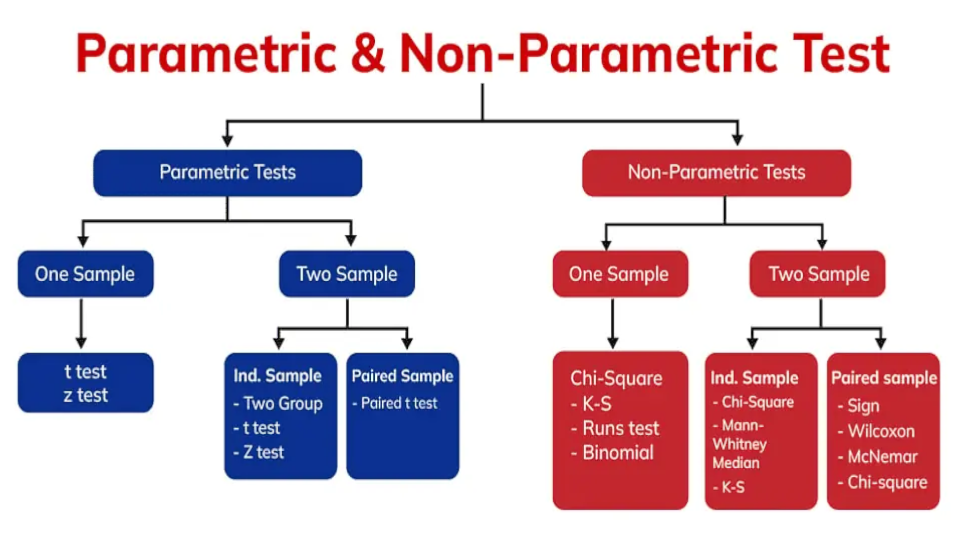 Parametric tests are suitable for evaluating continuous data, but they can be strongly influenced by outliers. On the other hand, non-parametric tests are capable of handling ordinal and ranked data, and they are less sensitive to the presence of outliers.